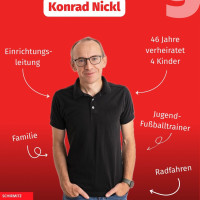 Konrad ist begeisterter Fußballtrainer und liebt Radfahren. Führ ihn lebt Demokratie vom Mitgestalten und Mitmachen. Ein großer Schwerpunkt in seinem beruflichen und sozialen Engagement ist die Unterstützung unserer Jüngsten und Ältesten. Er wünscht sich eine Kommune, die sich gegenseitig unterstützt, hilft und füreinander da ist! Er ist sich sicher: In Schirmitz geht noch mehr!